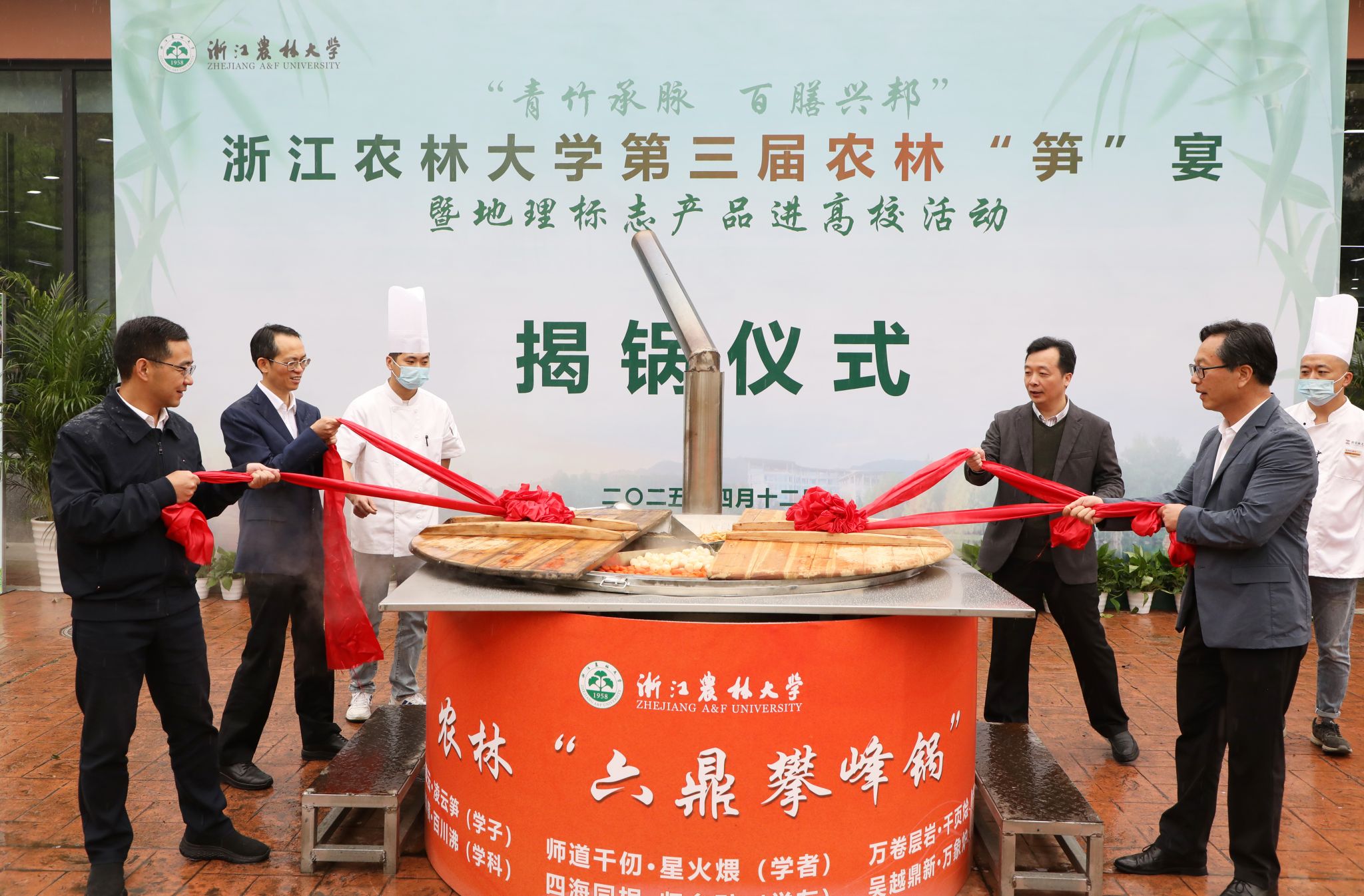 第三屆農林“筍”宴暨地理標志產品進高校活動由浙江農林大學、臨安區人民政府主辦。杭州市市場監管局(杭州市知識產權局),臨安區文旅局、市場監管局,我校黨辦、校辦,宣傳部,保衛部,國教學院,竹子研究院,工會,團委,后勤中心,開化縣桐村鎮中心小學等單位負責人參加活動。