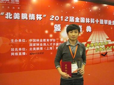 浙農林大新聞網訊 近期,“北美楓情杯”2012屆全國林科十佳畢業生頒獎典禮在北京國際竹藤大廈舉行,我校園林植物與觀賞園藝碩士研究生孫小明被評為2012屆全國林科“十佳畢業生”。