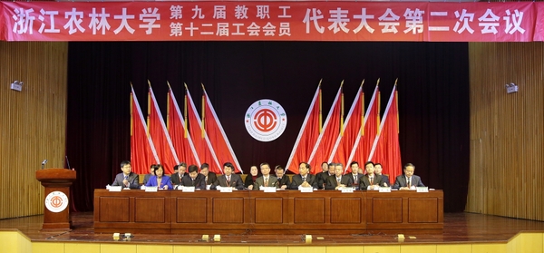 3月16日,浙江農林大學第九屆教職工暨第十二屆工會會員代表大會(以下簡稱“雙代會”)第二次會議在東湖校區舉行。校黨政班子成員宣勇、周國模、鐘平、沈希、沈月琴、胡祖吉、童曉暉出席大會。校黨委副書記方偉、副校長王自勇分別主持會議。