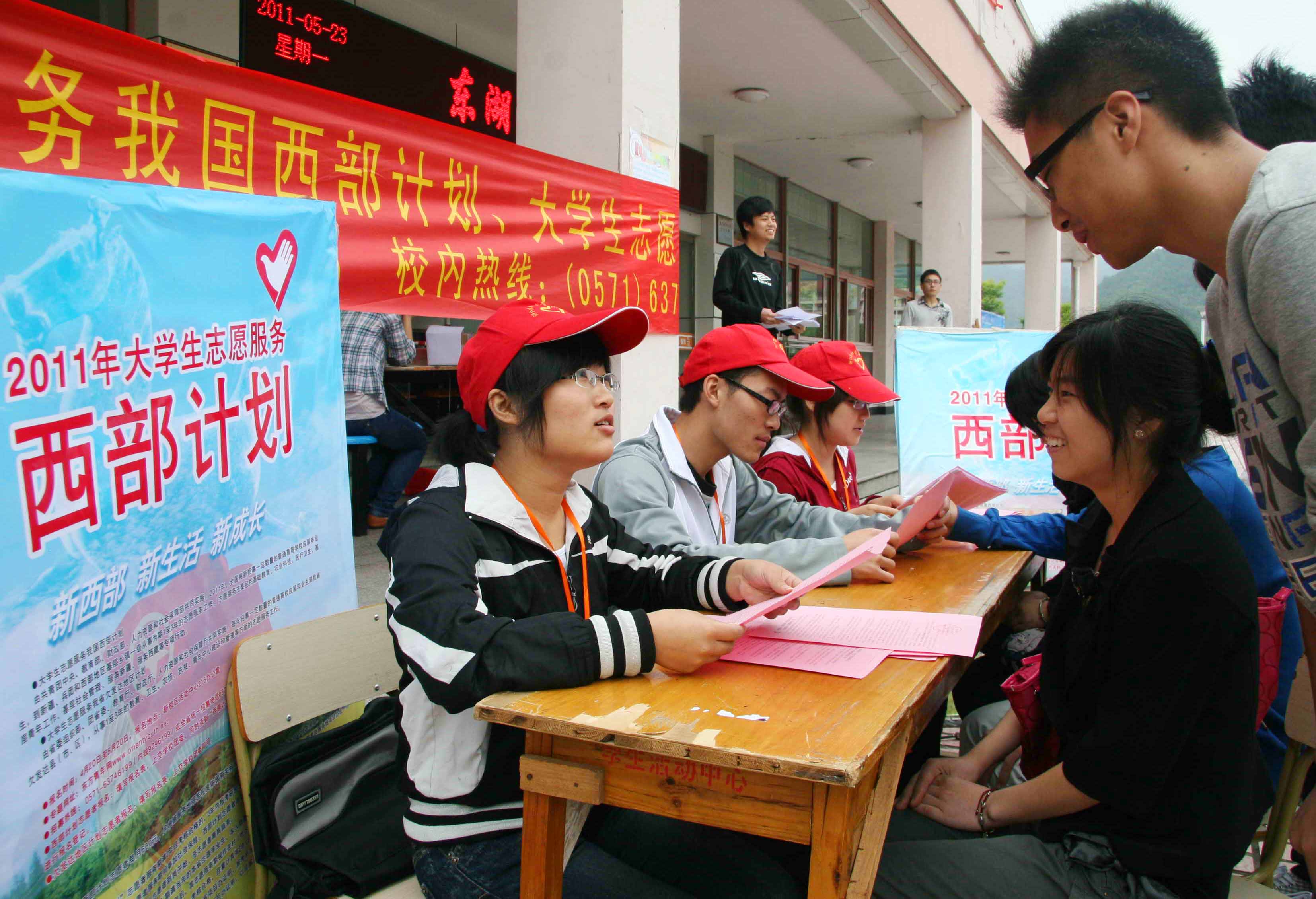 5月23日,校團委在東湖食堂前舉行西部志愿者報名咨詢活動,吸引了近百名應屆畢業生前來咨詢報名、了解情況。近年來,我校已先后選派近百名應屆畢業生,前往西部開展志愿者服務,不少志愿者還留在西部省份安家立業,創新創業,實現了人生價值。(天衣 文/攝)