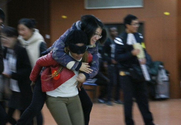 見面會中,國際教育學院負責人致辭寄予了對中外伙伴交流互助的期望,用孔子圣言表達對國際友人的歡迎。中外雙方的節目表演和在場成員的即興表演令晚會升溫。同學們根據信息號碼牌找到小伙伴進行熱烈的交流并在專門人員的教授下跳集體舞。晚會在載歌載舞的熱鬧氛圍中圓滿落幕。