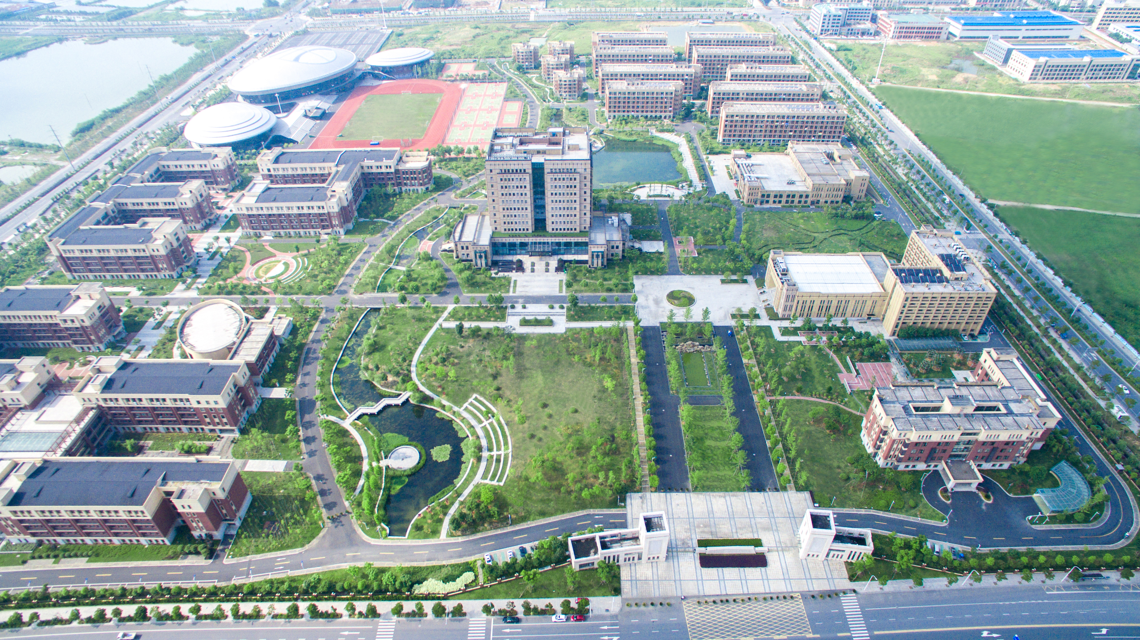 夏季蔥綠與浪漫綻放在校園中,綠樹(shù)、湖水伸展如絲絨,蔓延如翡翠,山在遠(yuǎn)處奔涌。