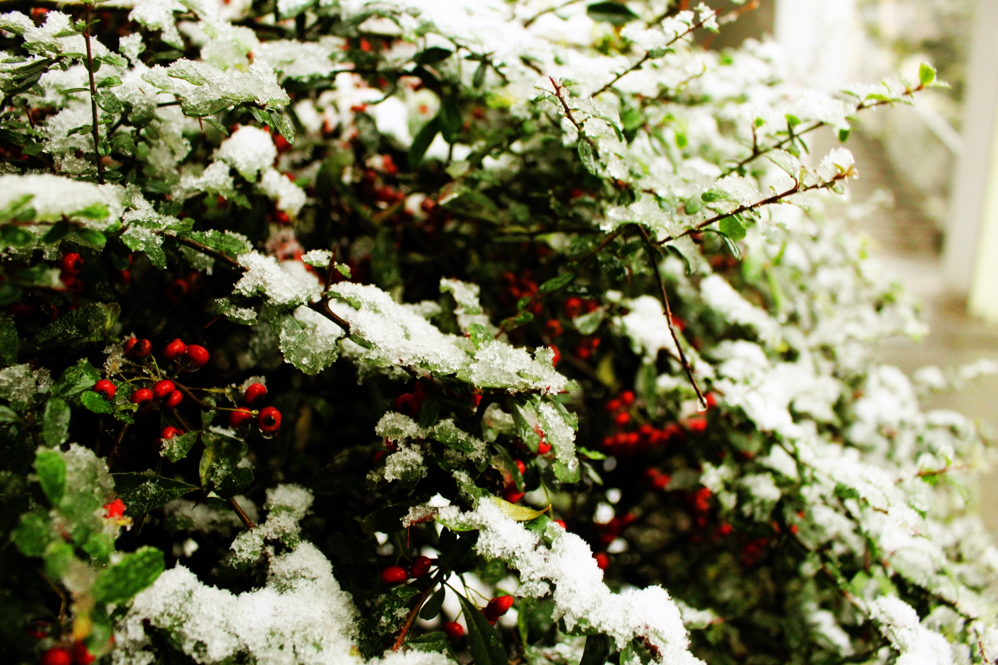 絲絲寒意從窗縫滲入,即使在屋內(nèi),亦是頗冷,陽(yáng)臺(tái)遠(yuǎn)眺,雪下著下著,竟越發(fā)大而密了。墨綠的遠(yuǎn)山襯著白雪,靜謐悠然,仿佛從天地之初就這樣契合。這美景動(dòng)人,總想與友共享,若晚來(lái)天欲雪,能飲一杯無(wú)?