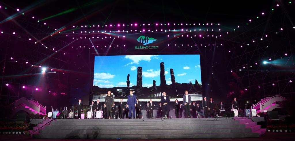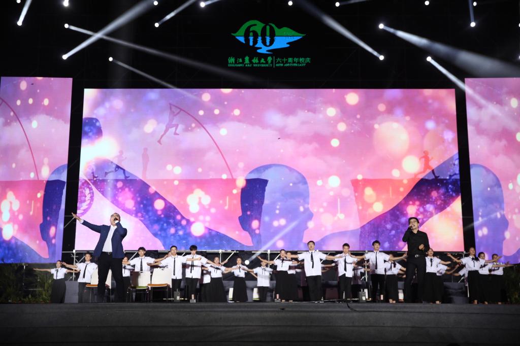 六秩譜華章,聚力再啟航。10月20日晚7點(diǎn)整,“‘親山戀水’——浙江農(nóng)林大學(xué)建校60周年文藝晚會(huì)”在東湖校區(qū)如期舉行。校黨政班子成員、全體中層干部以及校友代表、師生代表、社會(huì)各界嘉賓近萬(wàn)人觀看了演出。