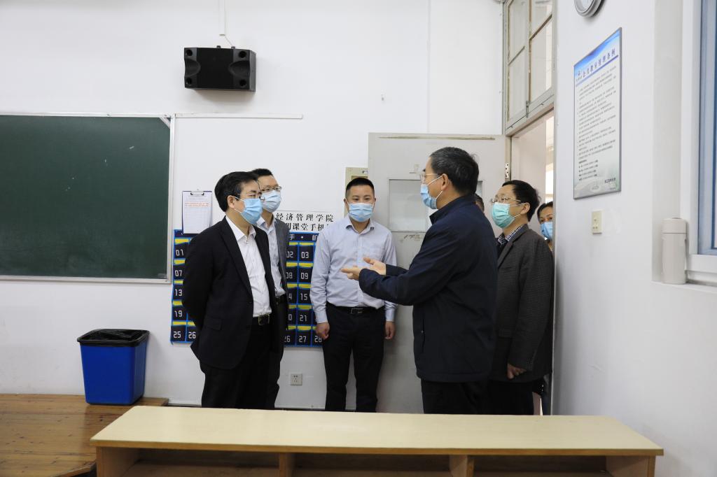 校長應義斌,校黨委副書記馮尚申,副校長胡祖吉、徐愛俊一行來到衣錦校區南門、教室,學術交流中心(居家觀察點)、聯建公寓大門學生返校報到檢測點和寢室、食堂檢查指導工作。
