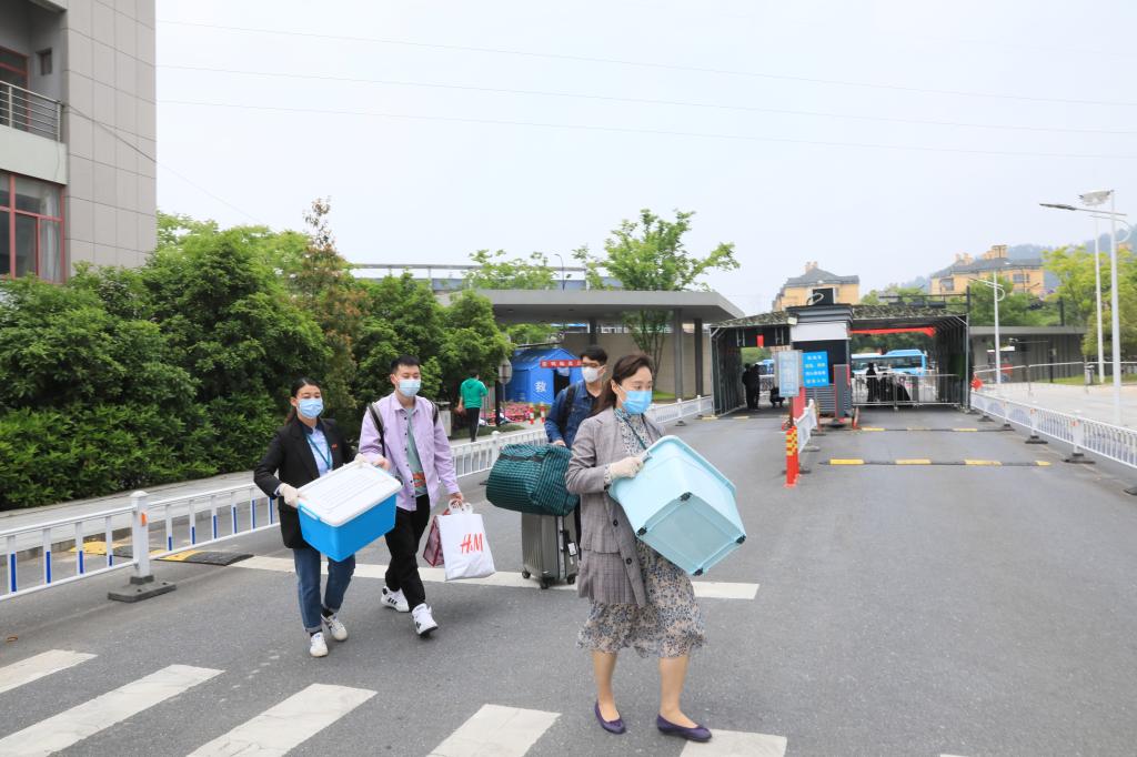 為了迎接返校報到的學生,學校安排了專門返校專車,從車站接學生回校,在校內安排擺渡車將學生送至公寓樓下;在東湖校區大西門和衣錦校區南門設置專門的報到檢測通道,實行校門口交通協調,自駕車輛即停即行,學生下車后立即進入專門通道;學生進校前要進行消毒,檢測體溫,檢查杭州健康碼、校園通行碼。校園內公共場所進行了通風、消毒,食堂也設置了排隊間隔距離限制,施行單桌同向入座就餐,確保用餐安全。