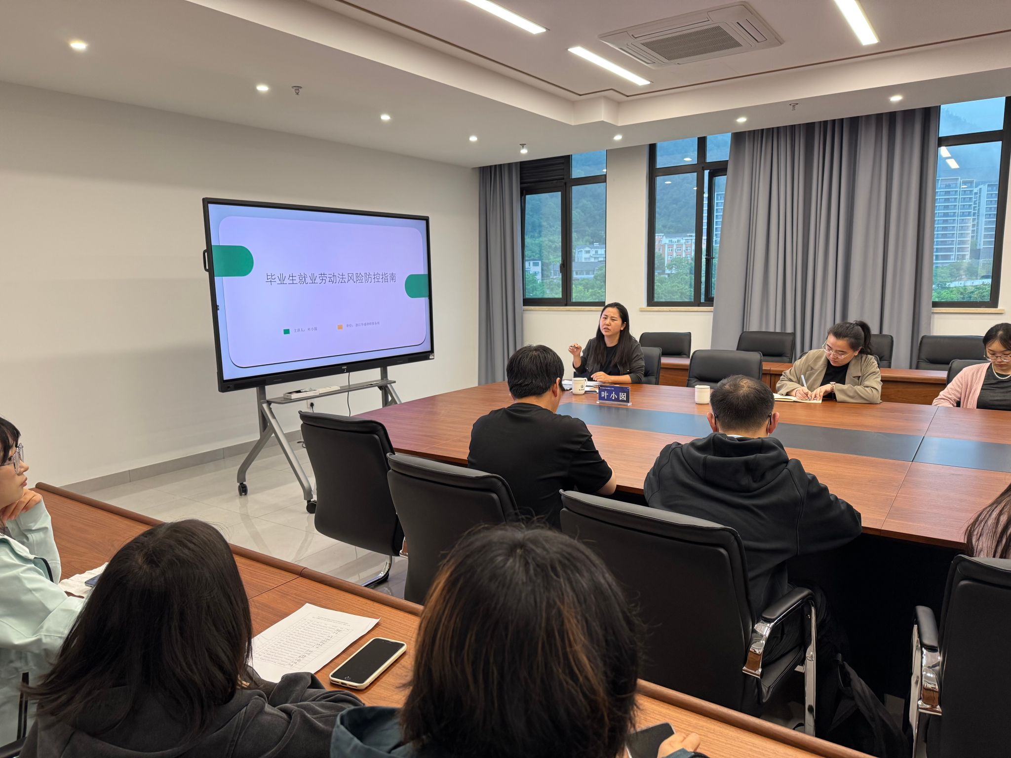 葉小囡律師聚焦大學生就業法律需求,圍繞勞動合同簽訂要點、試用期規定、工時與加班和社會保險、調崗與降薪、勞動關系的解除與終止、保密與競業六個方面展開深度講解。她結合典型案例,深入剖析了求職應聘中常見的“試用期陷阱”“薪資爭議”“競業限制條款”等法律問題,并針對實習實踐、創新創業等場景提供了實用建議。王政剛律師重點圍繞大學生就業刑事犯罪風險展開講解,以鮮活的案例對“知識產權侵權”“掛名法定代表人”等違法犯罪行為進行警示教育,提醒大學生在就業過程中提高警惕。律師強調,法律知識是職業發展的“護身符”,提前掌握法律工具,既能規避風險,也能在權益受損時高效維權。