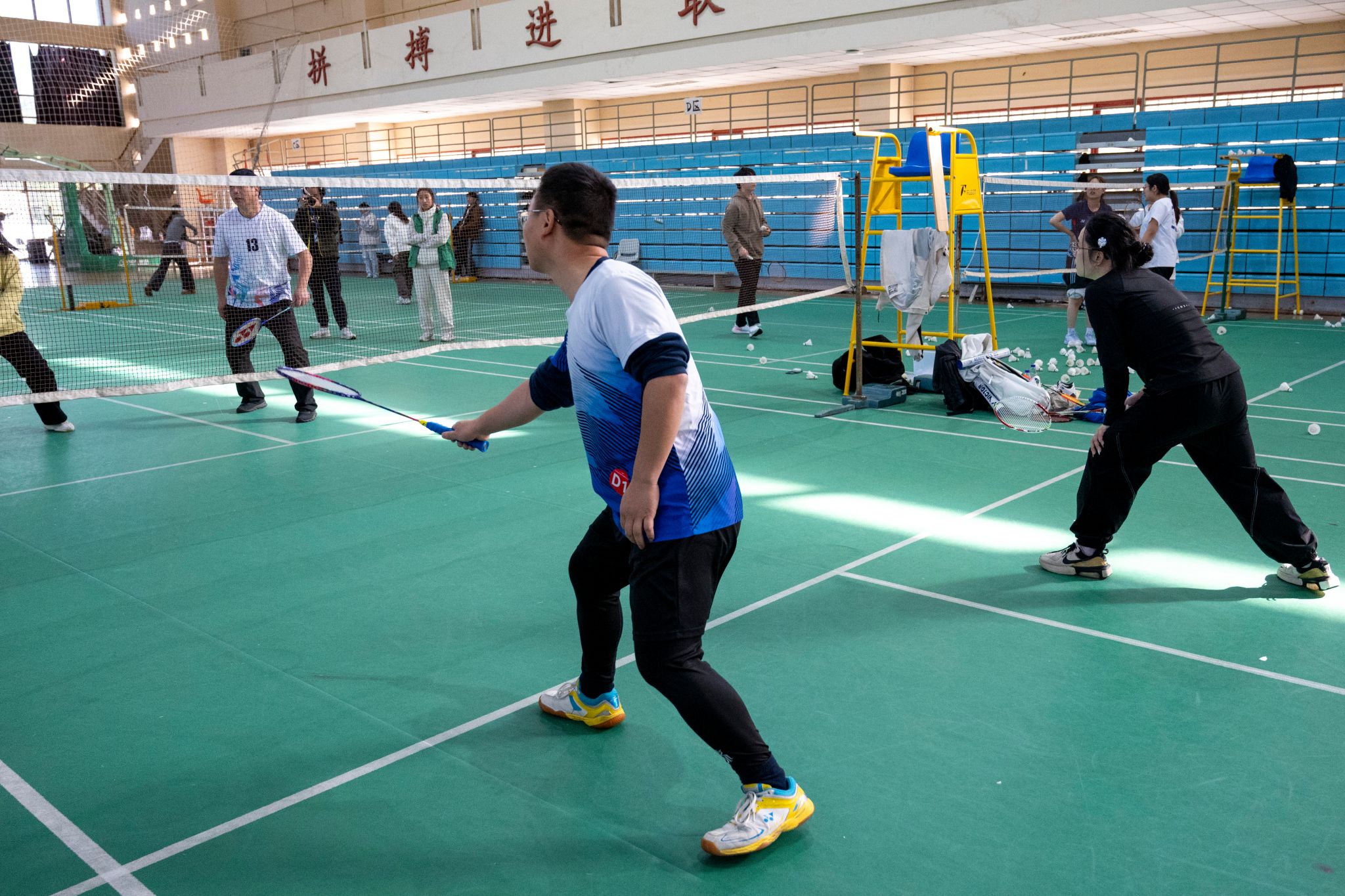 現場氣氛熱烈又和諧。師生之間配合默契,全場視線的焦點也都隨著羽毛球不斷移動。精準發球、挑球過網、邊線吊球、極限救球,選手們心中懷著“球不落地,永不放棄”的堅定信念,哪怕精疲力竭,也絕不輕易放過任何一個可以挽救的機會。他們用實際行動充分詮釋著頑強進取的精神,那股全力以赴、堅持不懈的勁頭,展現了他們對勝利的渴望,也深深感染著在場的每一個人。