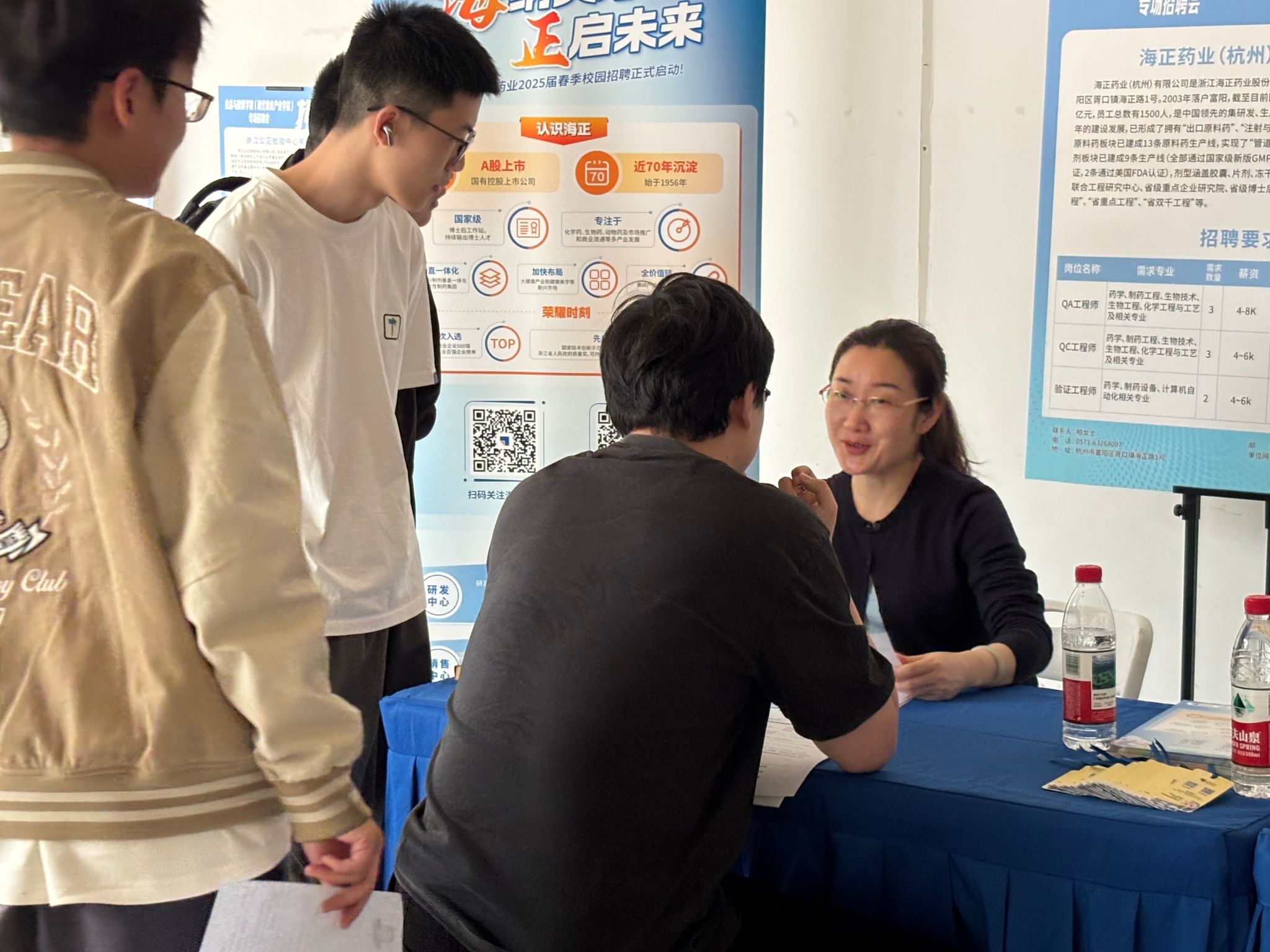 據統計,本次招聘會匯聚包括海正藥業、公正檢測在內的10家企業,攜崗入校釋放30余個精準崗位,吸引近200名學子到場求職。在供需雙方的雙向奔赴中,已有數十名畢業生與心儀企業達成了初步就業意向。