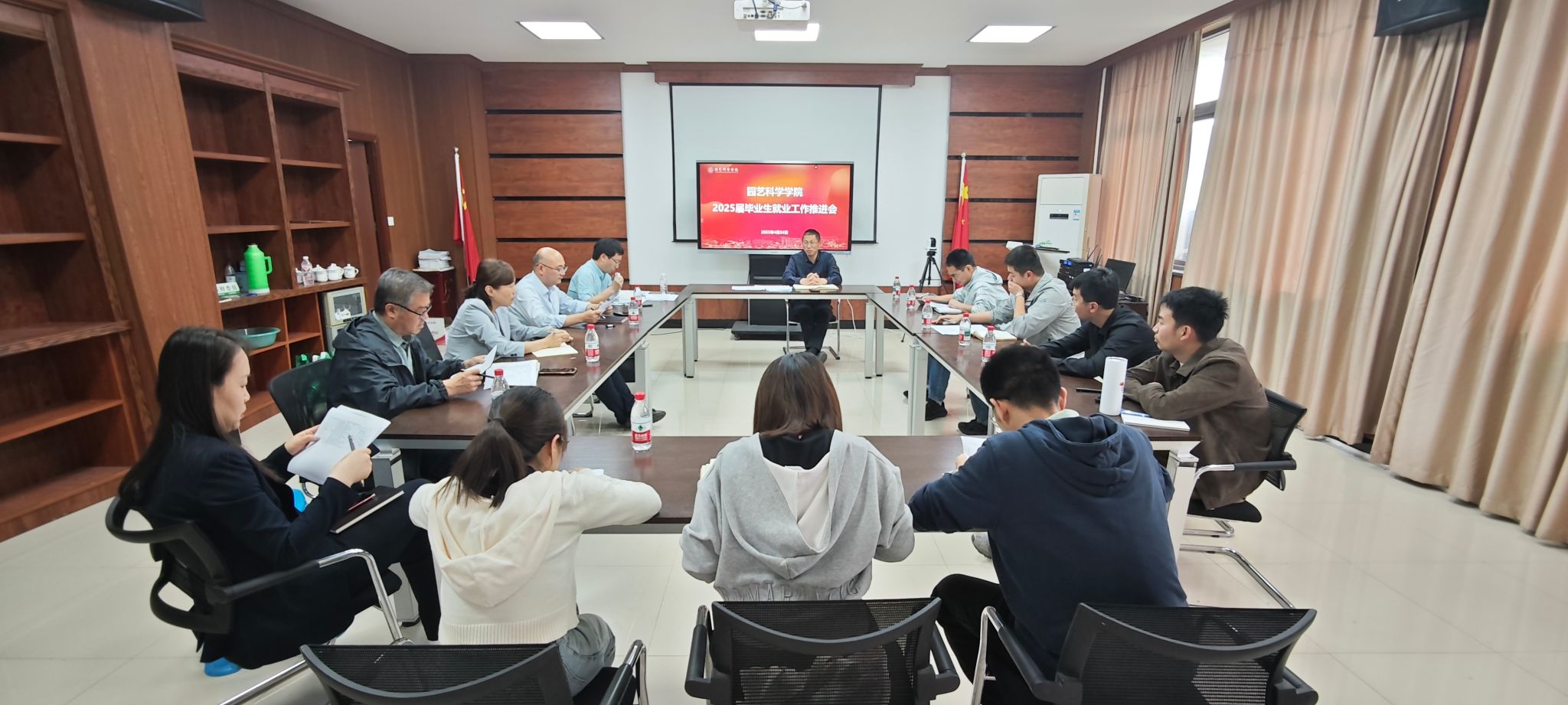 4月24日,園藝學(xué)院在學(xué)15-612召開2025屆畢業(yè)生就業(yè)工作推進(jìn)會。學(xué)院黨委書記汪和生、學(xué)生工作負(fù)責(zé)人、各學(xué)科團(tuán)隊負(fù)責(zé)人、畢業(yè)班班主任、導(dǎo)師代表及畢業(yè)班輔導(dǎo)員參加會議。
