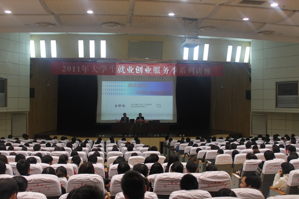 浙農林大新聞網訊 11月29日晚上,2011年大學生就業創業服務季系列講座之《面試技巧》在同學們的熱烈掌聲中拉開帷幕。本次講座由學生處主辦,大學生就業實踐社承辦。