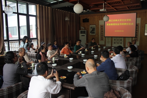 此次聘任會聘請了江西省發展戰略研究所所長、江西省中國民俗文化研究中心主任、《江西社會科學》雜志主編、中國國際茶文化研究會副秘書長余悅先生和第十一屆江西省政協委員、江西國弘投資有限公司董事長、華茶青年會理事長名譽主席張衛華先生為文化學院創意創業客座教授;同時,還聘請了衛生部民族衛生協會健康飲水專業委員會副秘書長陸洪波、中華茶館聯盟副秘書長侯建軍等十余位來自全國各地的業界精英為學院創意創業導師。