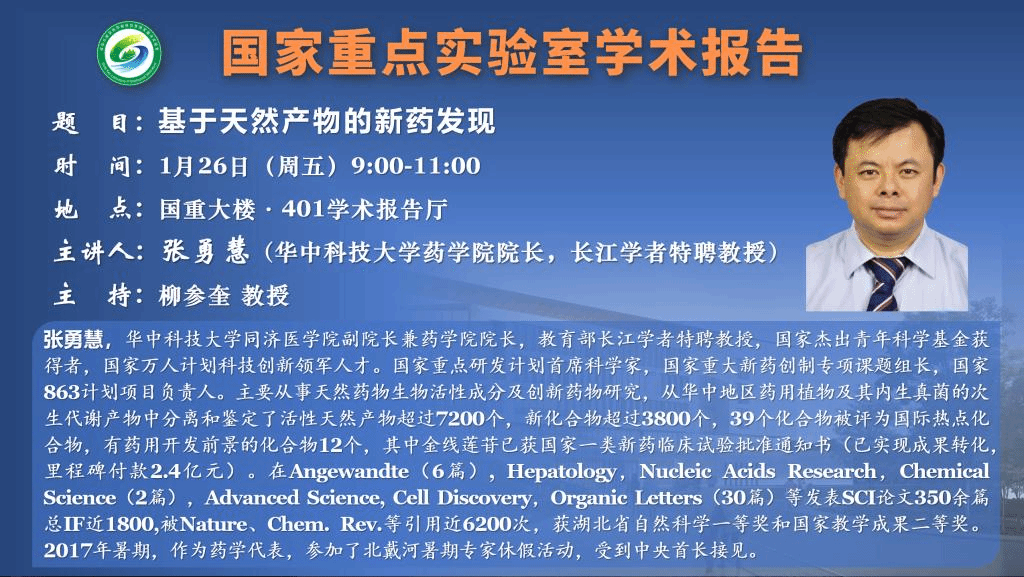 講座預(yù)告:基于天然產(chǎn)物的新藥發(fā)現(xiàn)