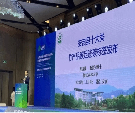 11月4日上午,在全國竹產業技術創新發展高峰論壇上,我校和安吉縣人民政府正式發布了全國首批十大類竹產品碳足跡碳標簽。